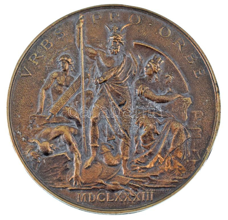 Description: Ausztria 1883. "Bécs török ostromának 200. évfordulója" kétoldalas bronz emlékérem modern, öntött replikája (70mm) T:XF