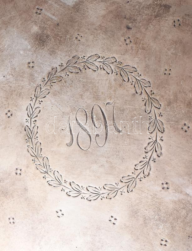Description: 1897 Ezüst (Ag) fedeles kekszes üveg. Csiszolt kristály üveg B betűvel. Jelzett ezüst fedéllel, évszámos gravírozással, dianás jelzéssel. Nettő 136 g Hibátlan d: 14 cm, m: 17 cm