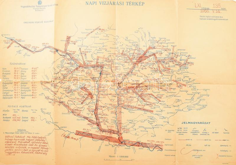 1956 Országos Vízjelző Szolgálat vízállás térkép 60x41 cm