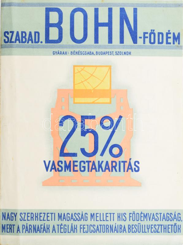 cca 1930-1940 Szab. Bohn-födém prospektus. Bp., Klösz Gy. és Fia-ny., ...