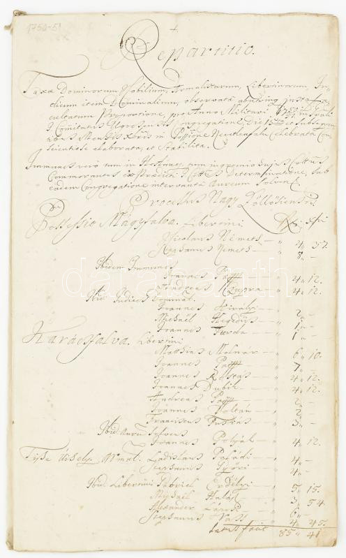 1750-51 Ugocsa megyei nemesek személyösszeírása. Repartitio, helyisége...