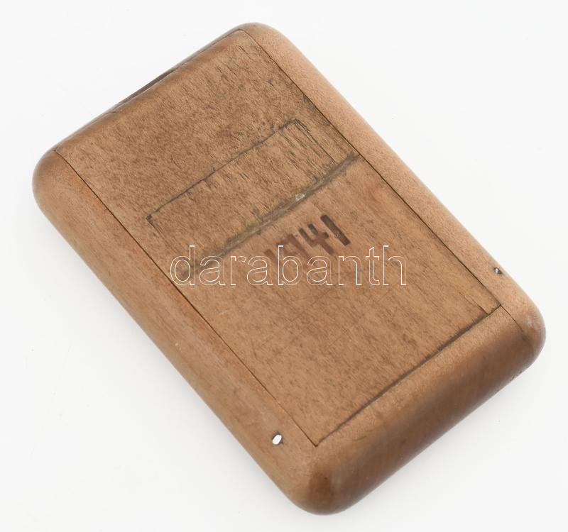 1941 Fronttárgy, faragott cigarettatartó, h: 11 cm