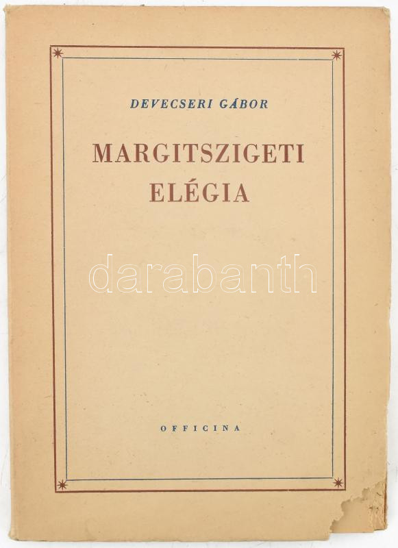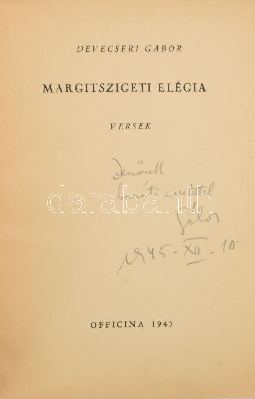 https://www.darabanth.com/en/478-Online-auction/478.0/Books/Books-Other-rarities~298/Devecseri-Gabor-Margitszigeti-elegia-Versek-Elso-kiadas-Bp-1945-Officina-Officina-ny~II3240054