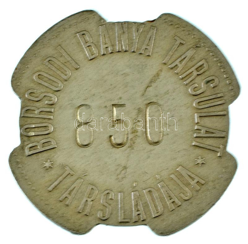 https://www.darabanth.com/en/478-Online-auction/478.0/Numismatics/Emergency-Coins-and-Notes~2000007/7E1900-Borsodi-Banyasz-Tarsulat-Tarsladaja-biztositotti-igazolo-zseton-850-es-sorszammal~II3157372