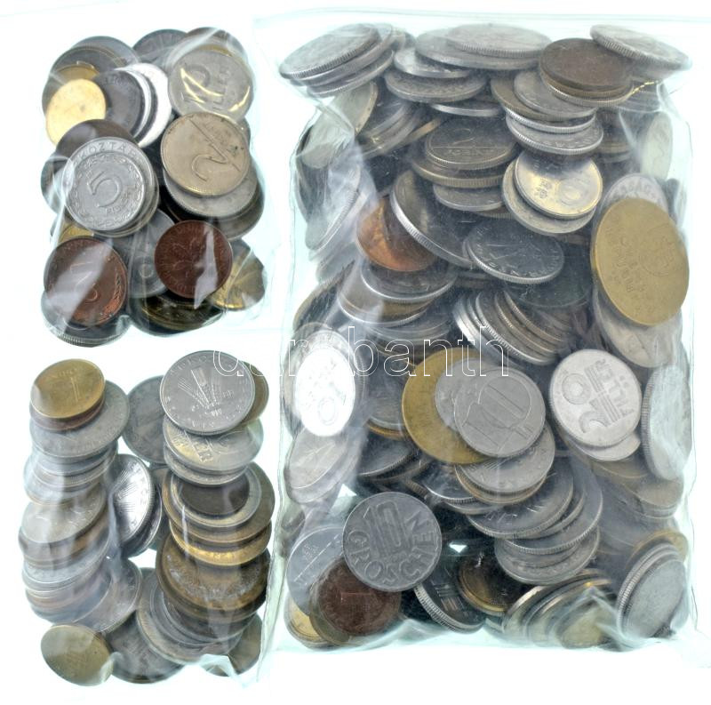 Vegyes, magyar és külföldi érmetétel mintegy ~1kg súlyban, T:vegyes Mixed, Hungarian and foreign coin lot (~1kg) C:mixed