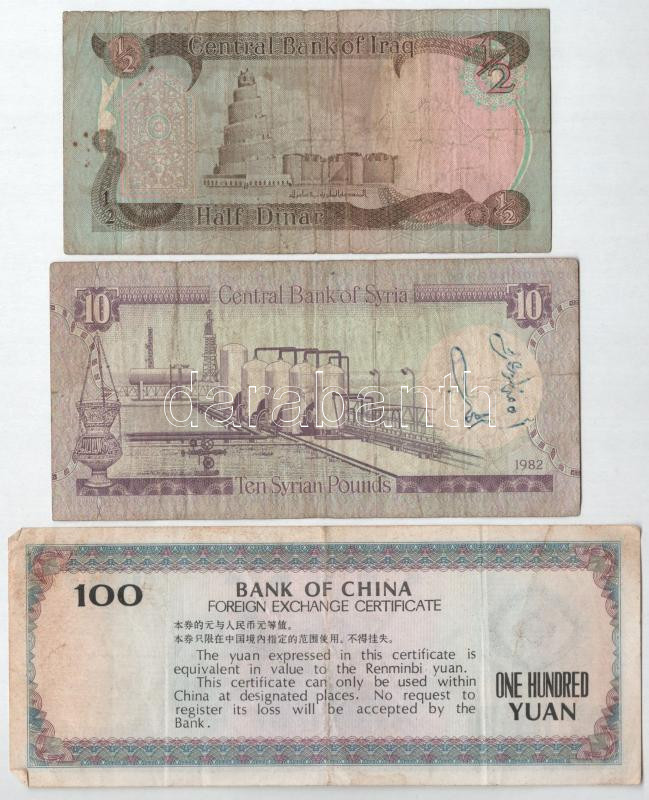 9db-os vegyes külföldi bankjegy tétel főként Jugoszlávia, közte egy Kína / Deviza tanúsítvány 100Y-ról T:F-VG 9pcs mixed foreign banknote lot, mainly Yugoslavia banknotes, in it China / Foreign Exchange Certificate from 100 Yuan T:F-VG