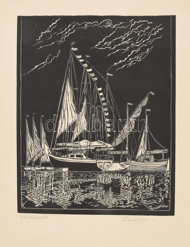 Dr. Székelyudvarhelyi Kováts Ferenc (1913-1997): Vitorláskikötő. Linóm...