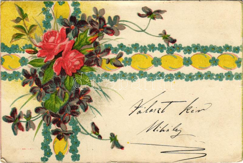 1912 Virágos üdvözlőlap / Greeting art postcard with flowers (EK)