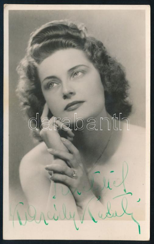 Karády Katalin (1910-1990) színésznő autográf aláírása őt ábrázoló fot...