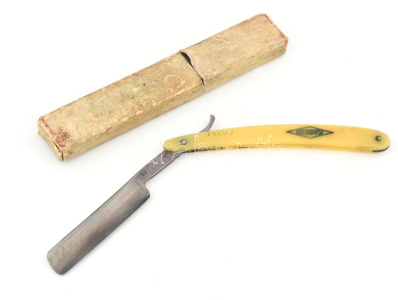 Régi "Kabeso Solingen" borotva, eredeti, kissé viseltes tokkal, kinyitva: 23,5 cm