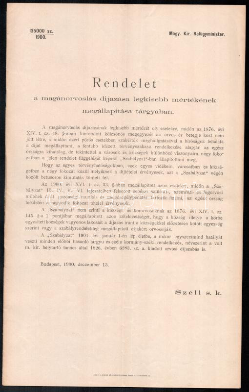 https://www.darabanth.com/en/479-Online-auction/479.0/Art-and-other-collectibles/Printed-Materials~1000013/1900-Rendelet-a-maganorvoslas-dijazasa-legkisebb-mertekenek-megallapitasa-targyaban-14p-Hajtva~II3271818