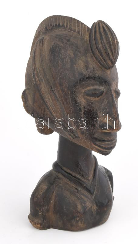Antik szuahéli faragott fa fej, m: 24 cm