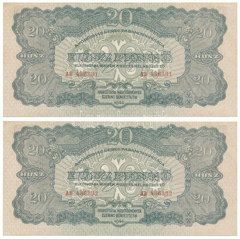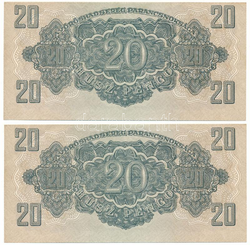 1944. 20P "A Vöröshadsereg Parancsnoksága" (3x) sorszámkövető pár "AB 486331 - AB 486332" T:AU-XF sarokhajlás