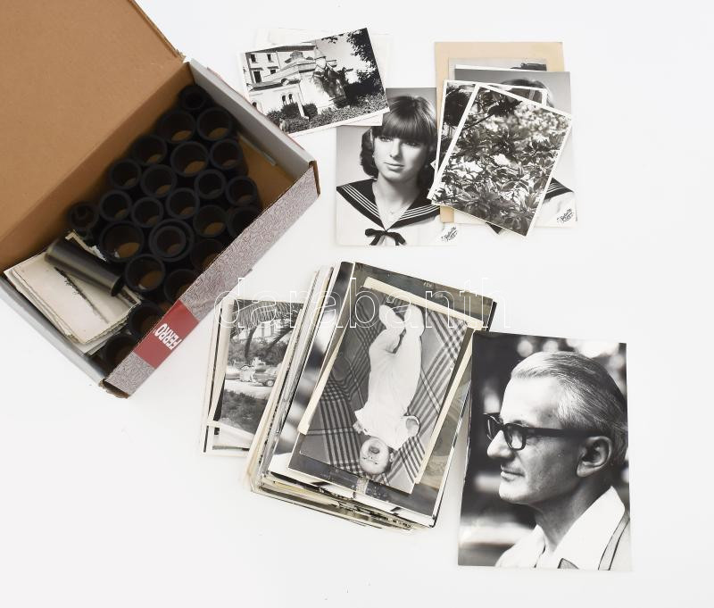 Egy doboznyi 60-as, 70-es évekből származó filmnegatív + régi és modern fotók klf méretben és témában.