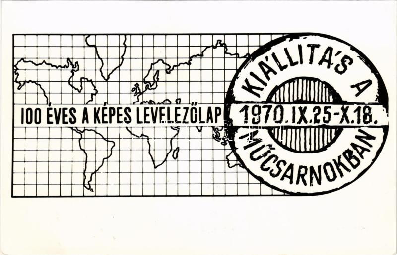 1970 100 Éves a Képes Levelezőlap Kiállítás a Műcsarnokban, reklám. Ké...