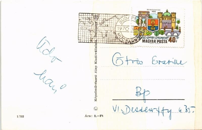 1970 100 Éves a Képes Levelezőlap Kiállítás a Műcsarnokban, reklám. Képzőművészeti Alap + CM