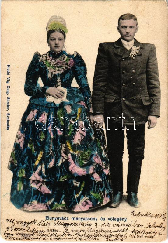 1907 Bunyevác menyasszony és vőlegény. Víg Zsig. Sándor kiadása / Vojv...