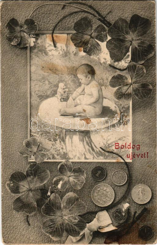 https://www.darabanth.com/en/479-Online-auction/479.0/Postcards/Greeting-Cards-Holidays~2000092/Boldog-ujevet-Kisbaba-penzekkel-es-negylevelu-loherevel-New-Year-greeting-baby-with-coins-and~II3267817