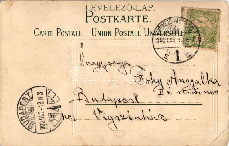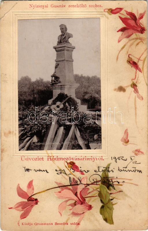 1902 Hódmezővásárhely, Nyizsnyai Gusztáv zeneköltő szobor. Grossmann Benedek utóda kiadása, Art Nouveau, floral, litho (EK)