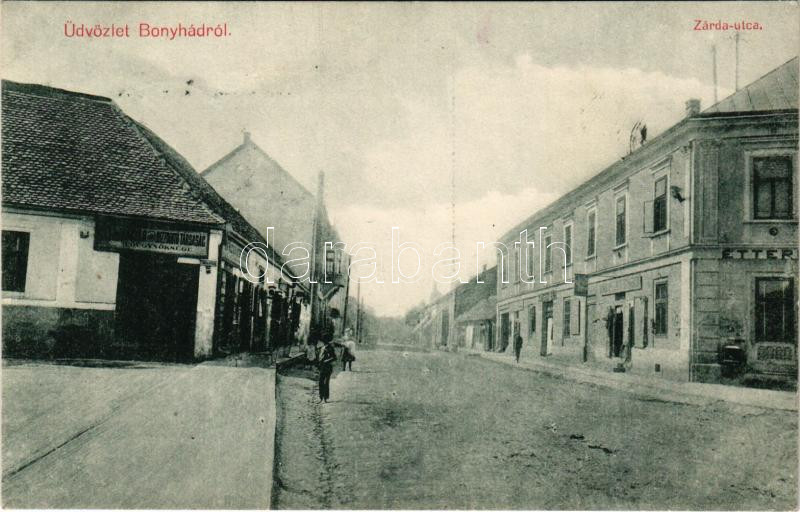 1914 Bonyhád, Zárda utca, Arany Oroszlán szálloda és étterem, Biztosító társaság főügynöksége. Reining E. kiadása