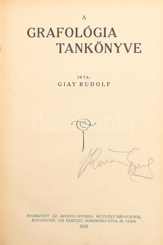 Giay Rudolf: A grafológia tankönyve. Bp., 1926, Apostol-ny.,122+1 p. Á...