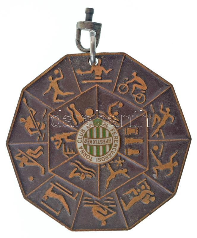~1970. bronz díjérem a Ferencvárosi Torna Club (FTC, Fradi) zománcozott címerével, füllel (50mm) T:XF