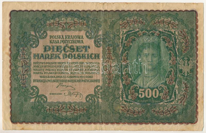 Lengyelország 1919. 500M (vízjeles papír) T:F-VG Poland 1919. 500 Mar...