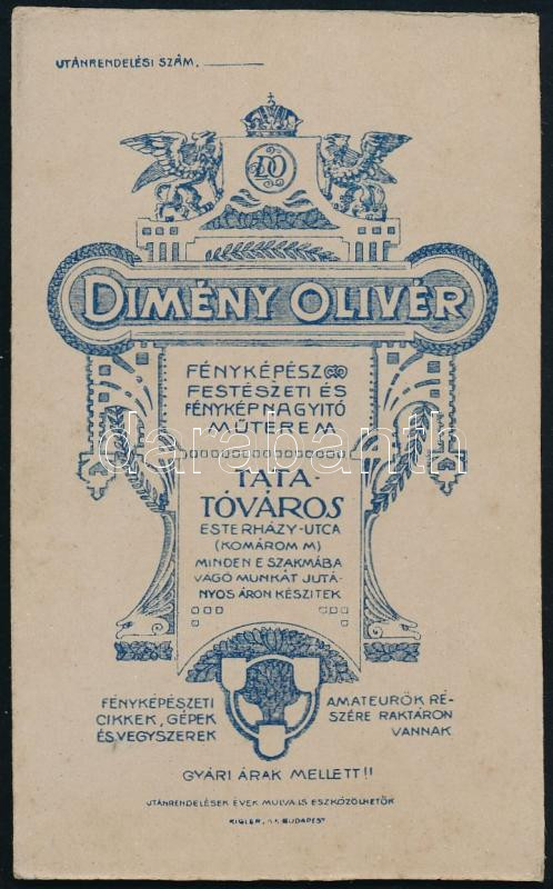 cca 1910 Elegáns fiatalember portréja, vizitkártya Dimény Olivér (Tata...