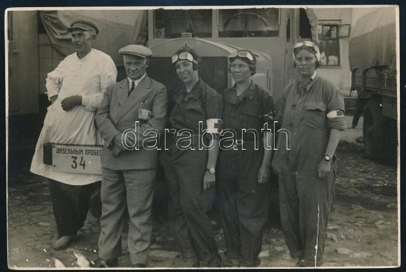 cca 1940 Cudotrans orosz vöröskeresztes sofőrök fotó kis törésnyommal ...