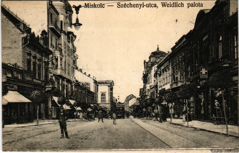 https://www.darabanth.com/en/480-Online-auction/480.0/Postcards/Hungary~1000005/1921-Miskolc-Szechenyi-utca-Weidlich-palota-Herz-Samu-uzlete-villamos-Vasuti~II3274400