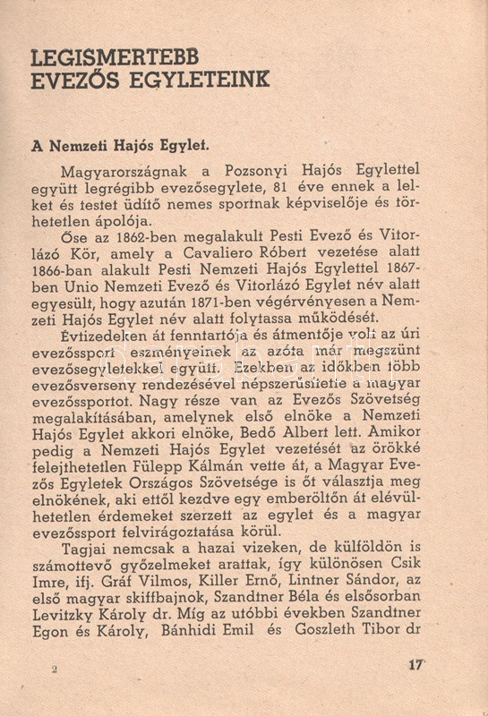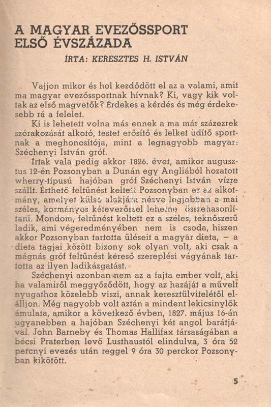 Budapest, 1943. Magyar Evezős Szövetség. (MTI Rt. nyomdája). 209 + [1] p. Egyetlen kiadás.