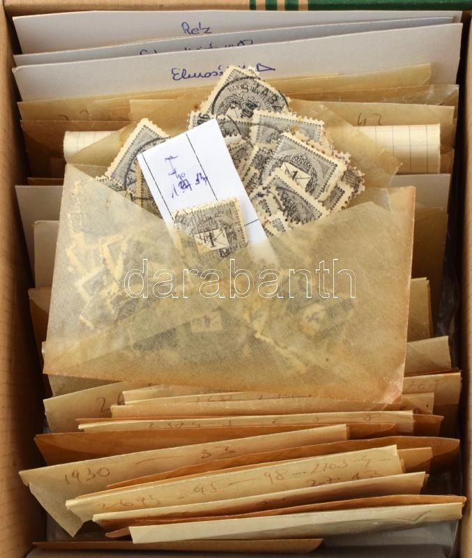 Krajcáros pergamentasakos rendező dobozban, kb 2.300 db bélyeg