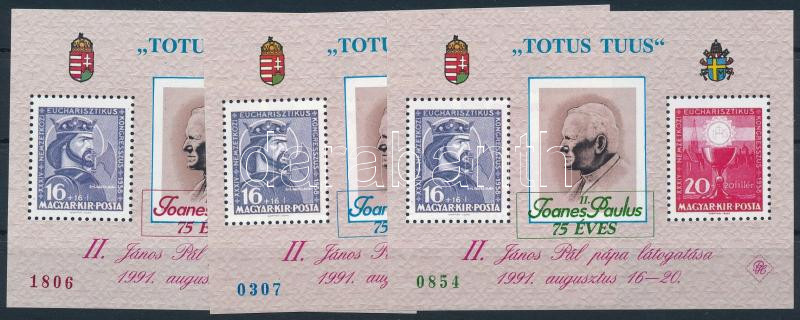 1992 II. János Pál pápa látogatása 3 db-os emlékív garnitúra https://www.darabanth.com/en/504-Online-auction/504.0/Hungarian-philately-and-postal-history/Private-souvenir-sheet~500062/1992-II-Janos-Pal-papa-latogatasa-3-db-os-emlekiv-garnitura~II2963452