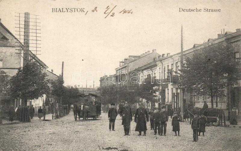 Bialystok German street with omnibus https://www.darabanth.com/hu/10-Nagyaukcio/10.1/Kulfoldi-kepeslapok/Lengyelorszag-Poland~2767/Bialystok-German-street-with-omnibus~II304673