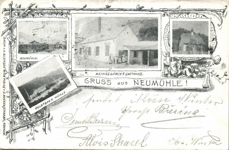 Neumühle with mill, forest hut and the guesthouse of Mathias Lerch lit... https://www.darabanth.com/hu/10-Nagyaukcio/10.1/Kulfoldi-kepeslapok/Nemetorszag-Germany~2774/Neumuhle-with-mill-forest-hut-and-the-guesthouse-of-Mathias-Lerch-litho-EB~II303042