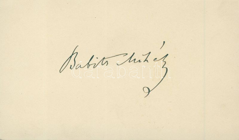 Babits Mihály saját kezű aláírása névjegykártyáján / Signature of Miha... https://www.darabanth.com/hu/10-Nagyaukcio/10.1/Magyar-filatelia-es-postatortenet/Filateliai-es-tortenelmi-dokumentumok-keziratok-alairasok-1734-1932-Philatelic-and-historic~2912/Babits-Mihaly-sajat-kezu-alairasa-nevjegykartyajan-Signature-of-Mihaly-Babits-on-his-vis~II265265