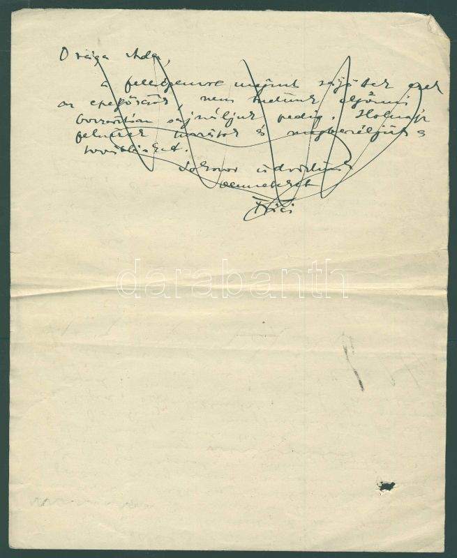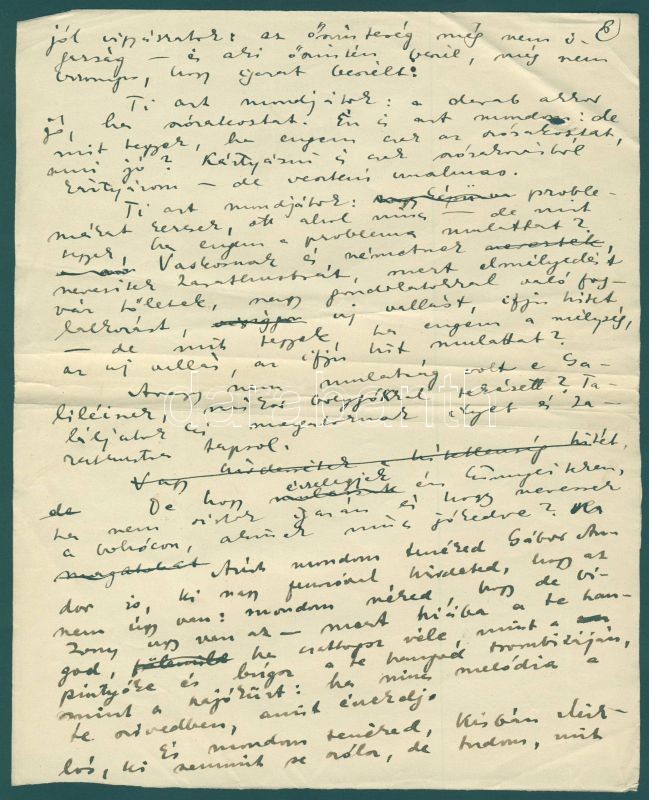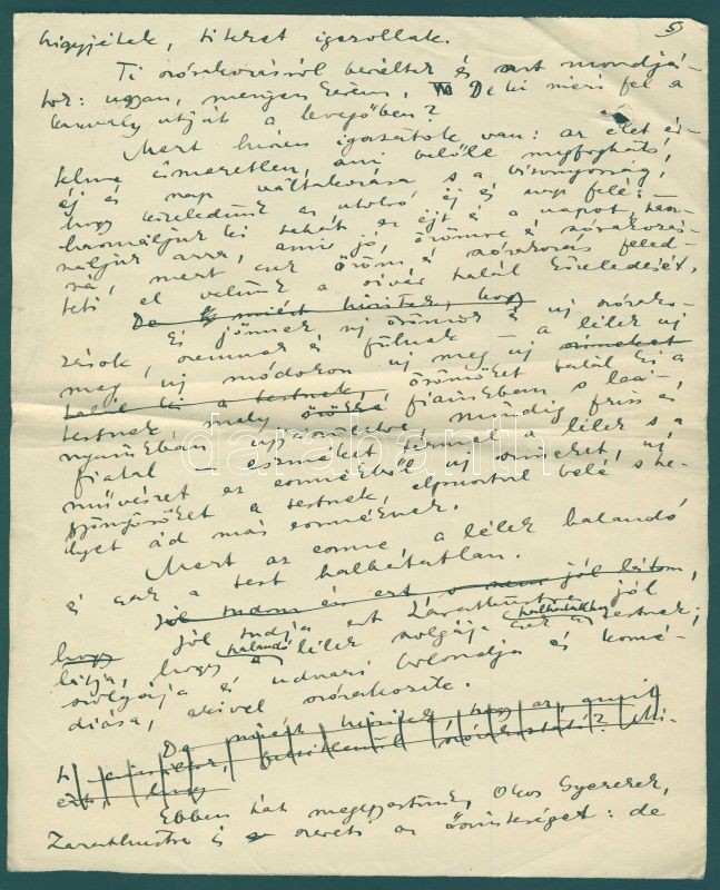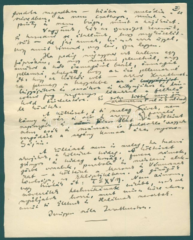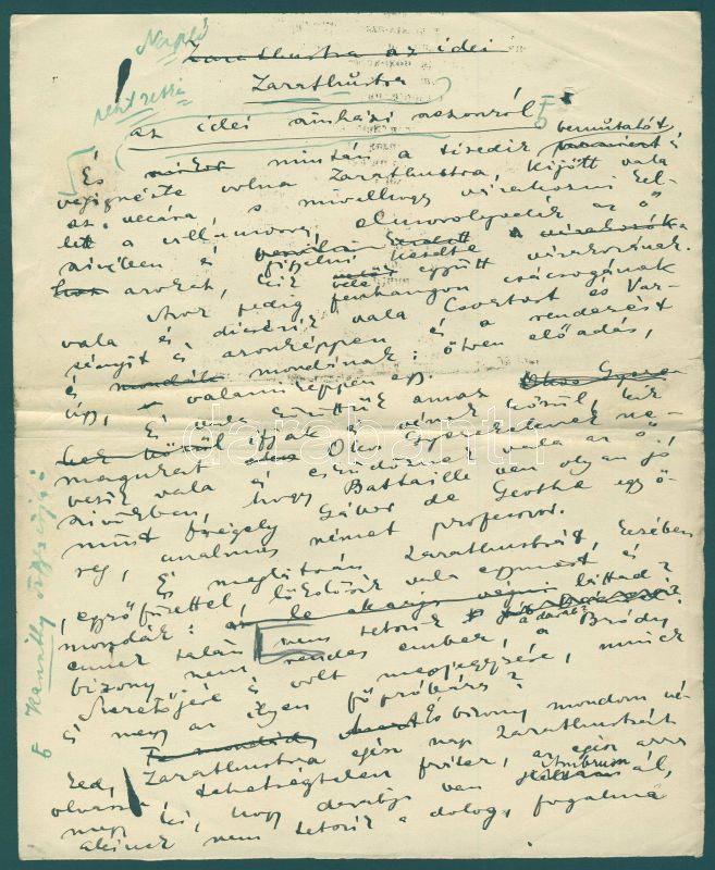 Karinthy Frigyes (1887-1938) író Zarathustra az idei színházi szezonról című paródia-cikkének autográf kézirata 7 lapon (az egyik lap hátulján az író magán jelllegű levele áthúzva) / Manuscript of the Frigyes Karinthy`s aricle