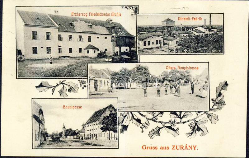 Zurány with dynamite factory and the Archduke Friedrich mill https://www.darabanth.com/hu/10-Nagyaukcio/10.1/Magyar-kepeslapok/Burgenland~2742/Zurany-with-dynamite-factory-and-the-Archduke-Friedrich-mill~II301819