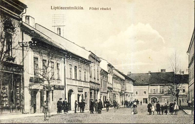 Liptószentmiklós main square with wine bar https://www.darabanth.com/hu/10-Nagyaukcio/10.1/Magyar-kepeslapok/Felvidek-Northern-Hungary-Slovakia~2739/Liptoszentmiklos-main-square-with-wine-bar~II301748