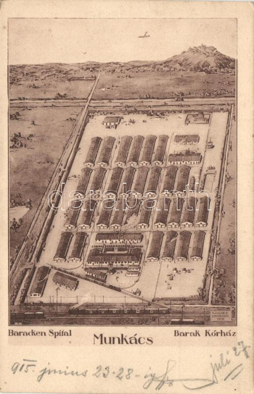 Munkács Military barack hospital with airplane (Klösz postcard) https://www.darabanth.com/hu/10-Nagyaukcio/10.1/Magyar-kepeslapok/Karpatalja-Carpatho-Ukraine~2740/Munkacs-Military-barack-hospital-with-airplane-Klosz-postcard~II299957