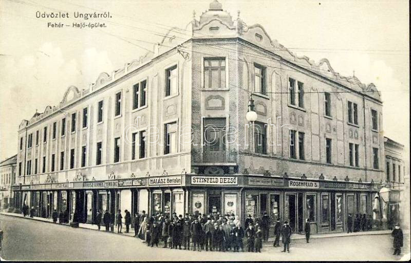 Ungvár White Ship building with shops of Steinfeld,Halász,Rosenfeld,Ja... https://www.darabanth.com/hu/10-Nagyaukcio/10.1/Magyar-kepeslapok/Karpatalja-Carpatho-Ukraine~2740/Ungvar-White-Ship-building-with-shops-of-Steinfeld-Halasz-Rosenfeld-Jakubek-Krausz-Boross-Beer-etc~II302191