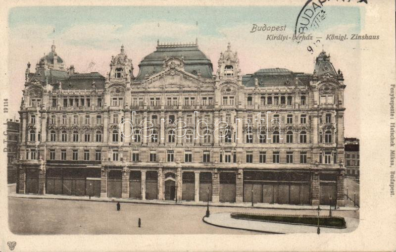 Budapest V. Királyi bérház https://www.darabanth.com/hu/10-Nagyaukcio/10.1/Magyar-kepeslapok/Magyarorszag-Hungary~2737/Budapest-V-Kiralyi-berhaz~II302722