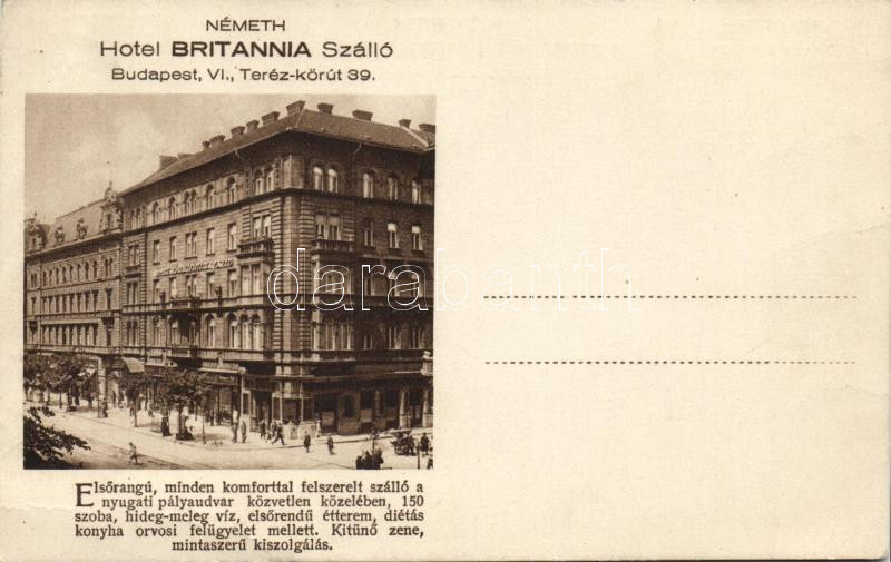 Budapest Vi. Hotel Britannia https://www.darabanth.com/hu/10-Nagyaukcio/10.1/Magyar-kepeslapok/Magyarorszag-Hungary~2737/Budapest-Vi-Hotel-Britannia~II305242