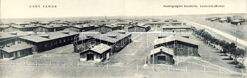 Leírás: Csót tábor hadifogságból hazaérők leszerelő-állomása panoramacard