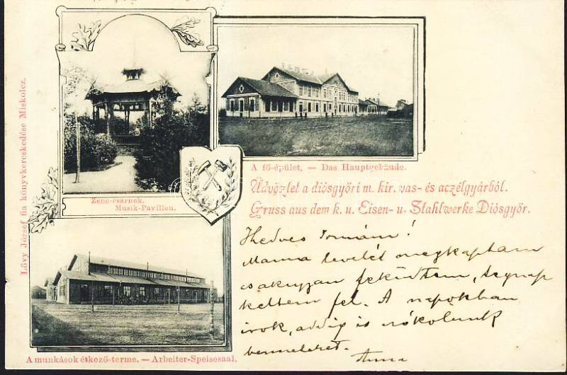 Diósgyőr Vas- és acélgyár étkezőteremmel és zenecsarnokkal https://www.darabanth.com/hu/10-Nagyaukcio/10.1/Magyar-kepeslapok/Magyarorszag-Hungary~2737/Diosgyor-Vas-es-acelgyar-etkezoteremmel-es-zenecsarnokkal~II302005