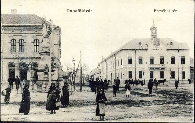 Dunaföldvár Erzsébet tér a Szentháromság-szoborral és a községházával ... https://www.darabanth.com/hu/10-Nagyaukcio/10.1/Magyar-kepeslapok/Magyarorszag-Hungary~2737/Dunafoldvar-Erzsebet-ter-a-Szentharomsag-szoborral-es-a-kozseghazaval-EK~II302030