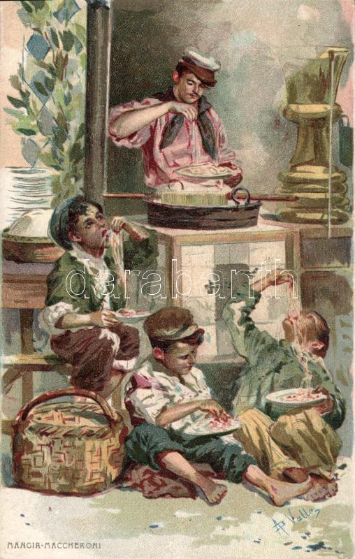 Italian maccaroni-eaters Litho https://www.darabanth.com/hu/10-Nagyaukcio/10.1/Motivum-kepeslapok/Folklor-Folklore~2818/Italian-maccaroni-eaters-Litho~II303427