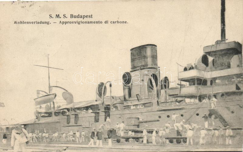 S.M.S. Budapest cole-loading https://www.darabanth.com/hu/10-Nagyaukcio/10.1/Motivum-kepeslapok/Hadihajo-Warship~2820/SMS-Budapest-cole-loading~II298853