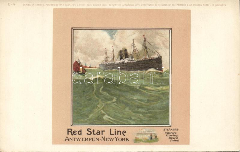 Red Star Line Antwerp-New York litho s: H. Cassiers https://www.darabanth.com/hu/10-Nagyaukcio/10.1/Motivum-kepeslapok/Hajo-Ship~2824/Red-Star-Line-Antwerp-New-York-litho-s-H-Cassiers~II304233