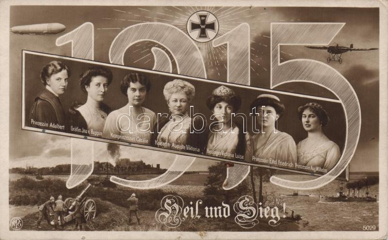 Leírás: Military WW. I. plane, zeppelin, ships German royal ladies